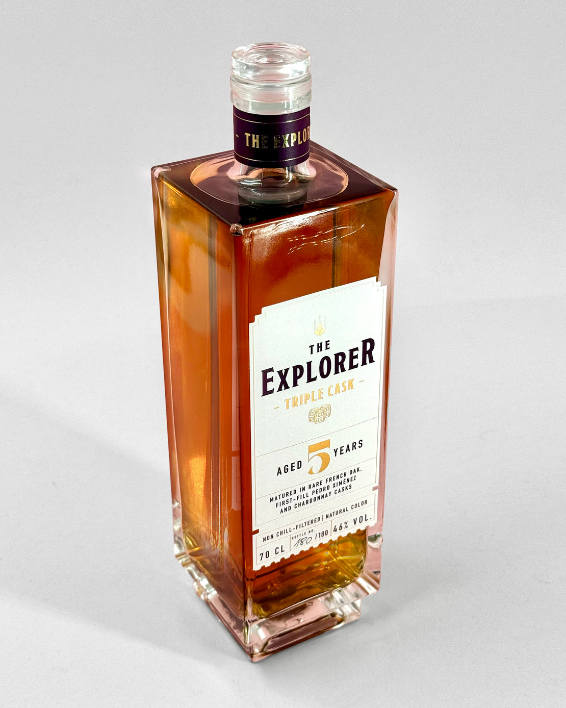 „The Explorer“ ist eine Hommage an den Mut, das Vertraute zu hinterfragen, an die Schöpfung von etwas völlig Neuem. Er würdigt jeden Moment, in dem wir den nächsten Schritt gewagt haben und unser außergewöhnlich reines, weiches Weizendestillat nach zwei jahren in französischer Eiche noch drei weitere Jahre in zwei erlesenen Fässern veredelten: Pedro Ximénez Sherry und Chardonnay. Zwei Welten, die kaum gegensätzlicher sein könnten: tiefe Süße und strahlende Eleganz vereinen sich hier zu einer Harmonie von seltener Tiefe und Balance. Die Fässer selbst stammen aus den weltberühmten Küfereien Tonelería del Sur und Tonnellerie de Cognac, deren Handwerkskunst und Qualität seit Generationen Maßstäbe setzen.