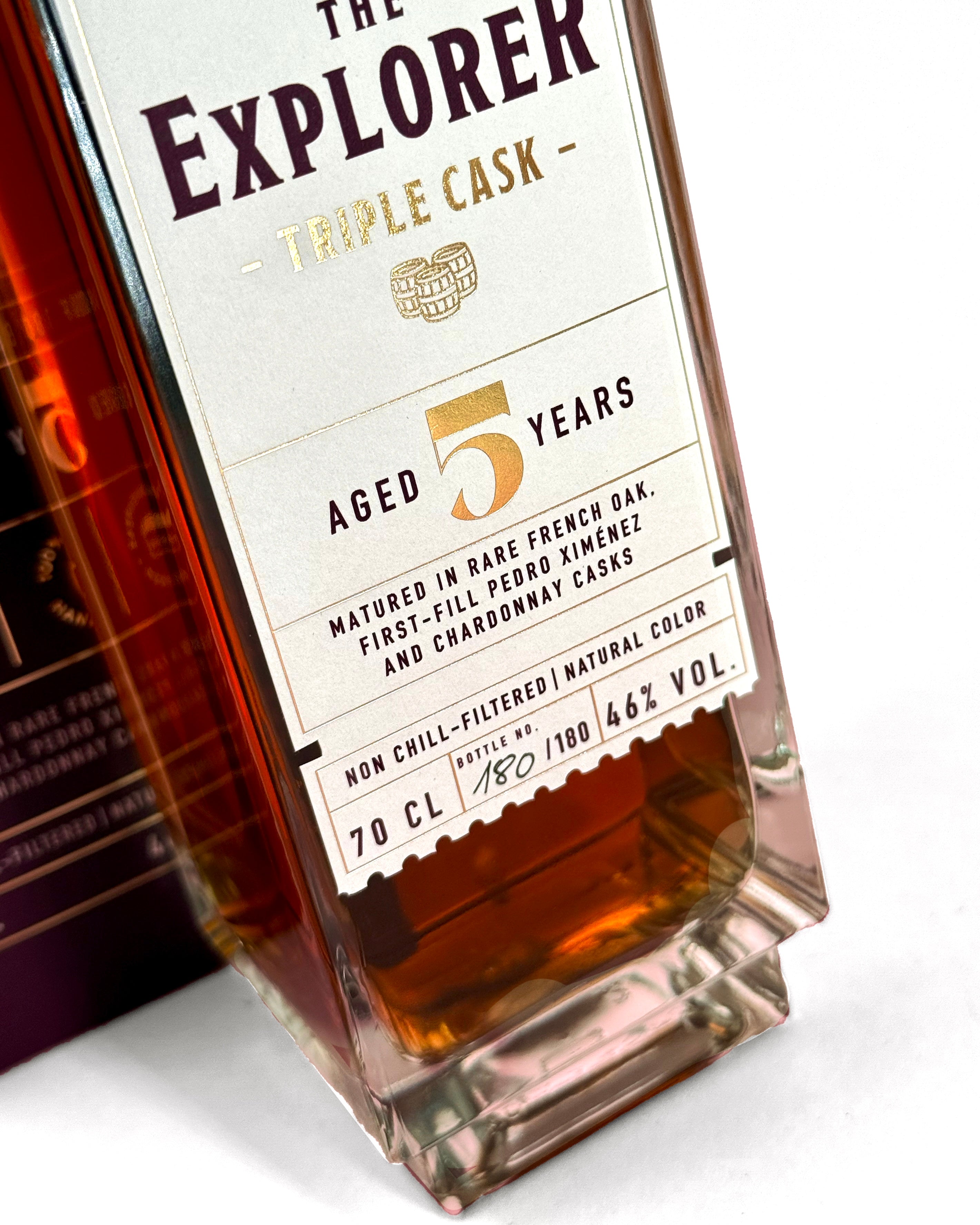 Farbliche Schwankungen unserer Produkte sind aufgrund der 100% natürlichen Inhaltstoffe völlig normal. The Explorer Triple Cask enthält keine zugesetzten Farbstoffe. Die Farbe ist rein natürlich. Bei längerfristiger Lagerung und/oder UV-Einstrahlung kann sich die Farbe verändern. All diese Schwankungen sind rein optischer Natur und haben keinerlei Einfluss auf Geschmack, Haltbarkeit oder Qualität des Produktes. Bitte trocken, kühl und vor Licht geschützt lagern.