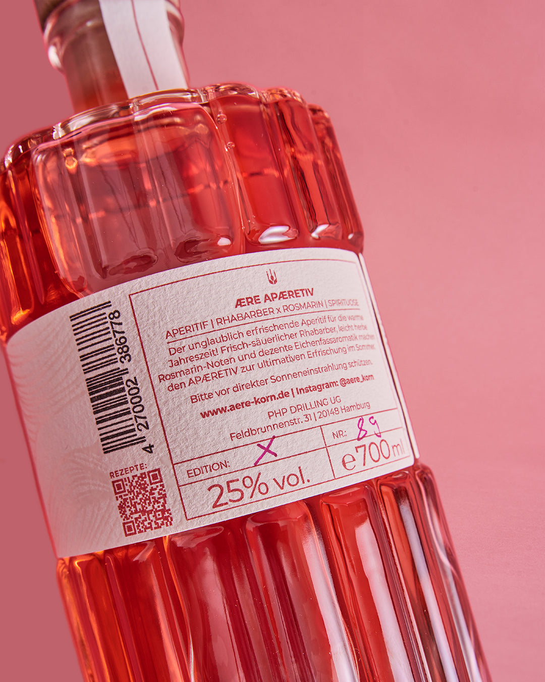 Rhabarber bringt natürliche Frische und angenehme Säure, der Rosmarin ergänzt mit ätherischen Ölen. Die feine Eichenfassnote und seine leichte Zitrusfrische addieren Komplexität – intensiv im Geschmack, harmonisch im Abgang. AERE Aperitif ist dein perfekter Begleiter für lange Sommerabende auf dem Balkon, das BBQ mit Familie und Freunden, ein entspanntes Picknick im Park und die perfekte Basis für kreative Mixgetränke & Cocktails.